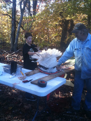 When we got there, Stevo was just loosening the feathers from the first batch. It was sobering, I admit. I've never seen an animal killed or prepared, and it's a little unsettling. And "sad" like Mitchell said.